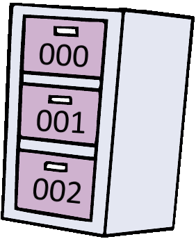 O gaveteiro é como uma série de gavetas numeradas de 00 a 99, sendo este número chamado de seu endereço. Dentro de cada gaveta há uma folha vazia, mas que pode conter uma instrução, um número de até três algarismos (por exemplo: 102, 50, 3, etc.) ou informações adicionais que serão abordadas ao decorrer do texto.